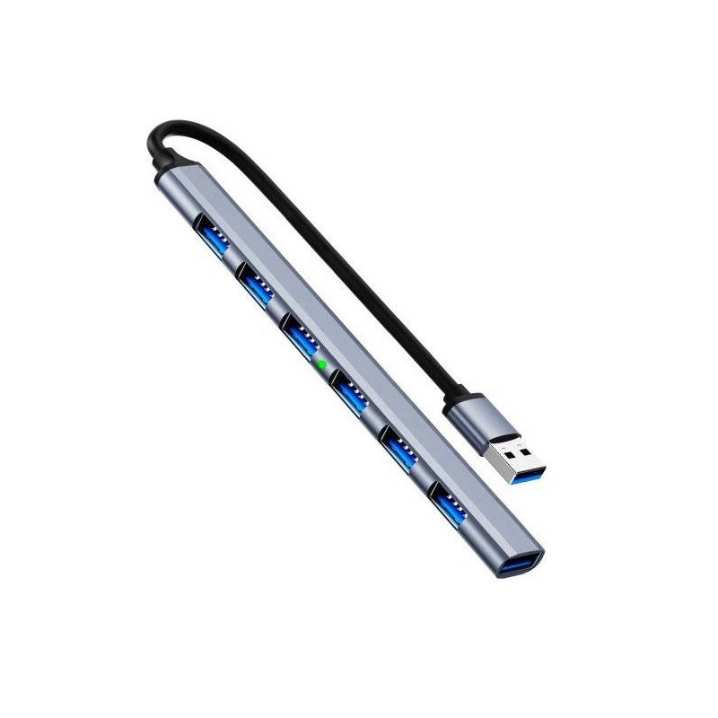 Rozdzielacz Adapter Portów USB Typ-A 7xUSB od producenta INTERLOOK, model HUB-7in1B-G, to nowoczesne i wszechstronne urządzenie zaprojektowane z myślą o zwiększeniu funkcjonalności komputera lub laptopa. Rozdzielacz wykonany jest z trwałego aluminium, co nadaje mu elegancki, srebrny wygląd, który będzie pasował do każdego nowoczesnego stanowiska pracy. Główne cechy adaptera to prostota użytkowania i zaawansowane możliwości technologiczne. Dzięki technologii Plug and Play, nie wymaga on instalacji żadnych dodatkowych sterowników. Wystarczy podłączyć go do urządzenia, aby natychmiast zacząć korzystać z dodatkowych portów USB.