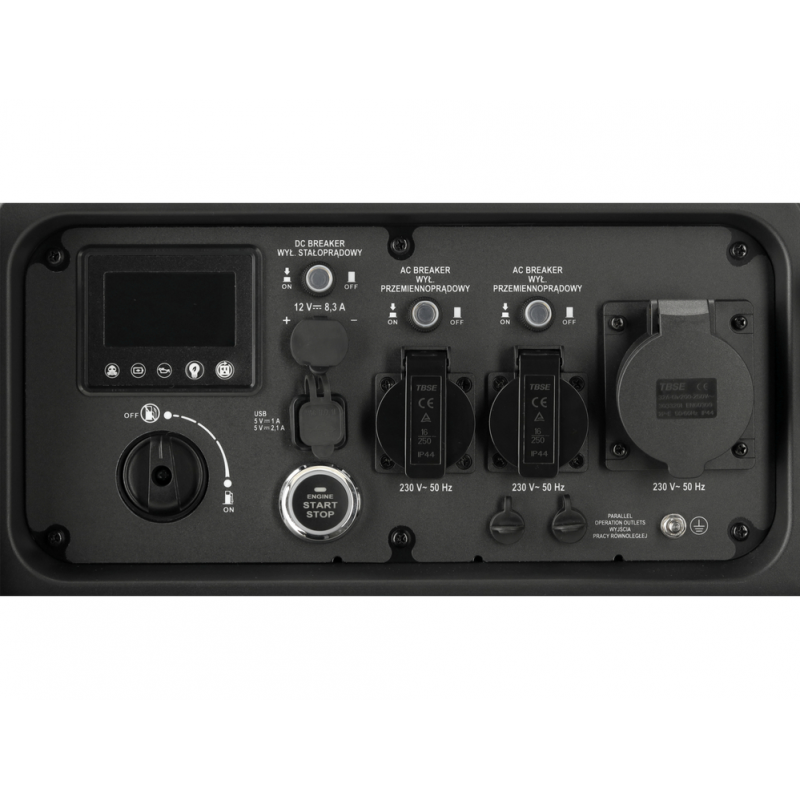 Generator wyposażono w silnik czterosuwowy R290-S, tryb ECO oraz rozruch ręczny i elektryczny, co przekłada się na komfort użytkowania i oszczędność paliwa. Czytelny panel sterowania, zabezpieczenia AC i DC oraz dwa gniazda 230V zwiększają bezpieczeństwo pracy. Dzięki kółkom transportowym i uchwytom agregat jest łatwy do przemieszczania mimo dużej mocy.