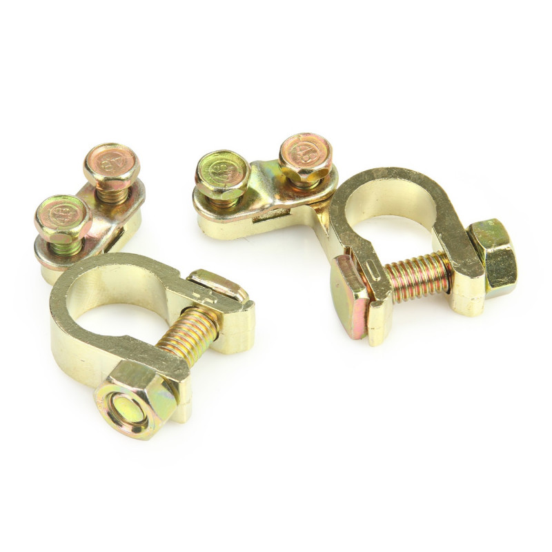 Wykonane są z wysokiej jakości stopu aluminium, który zapewnia doskonałe przewodnictwo prądu, co jest kluczowe w sytuacjach, gdy energia musi być szybko przesyłana. Te klemy są kompatybilne z akumulatorami o napięciu 6V, 12V oraz 24V, co czyni je wszechstronnymi i idealnymi zarówno dla samochodów osobowych, jak i ciężarowych. W zestawie znajdują się 2 sztuki klem – dodatnia i ujemna, co jest niezwykle wygodne, ponieważ nie trzeba ich nabywać osobno. Klemy są regulowane za pomocą mocnych śrub, co pozwala na solidne i pewne połączenie. Taki system mocowania zapewnia stabilność oraz bezpieczeństwo w trakcie użytkowania, eliminując ryzyko niepożądanych rozłączeń.