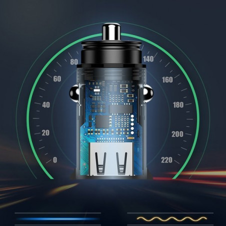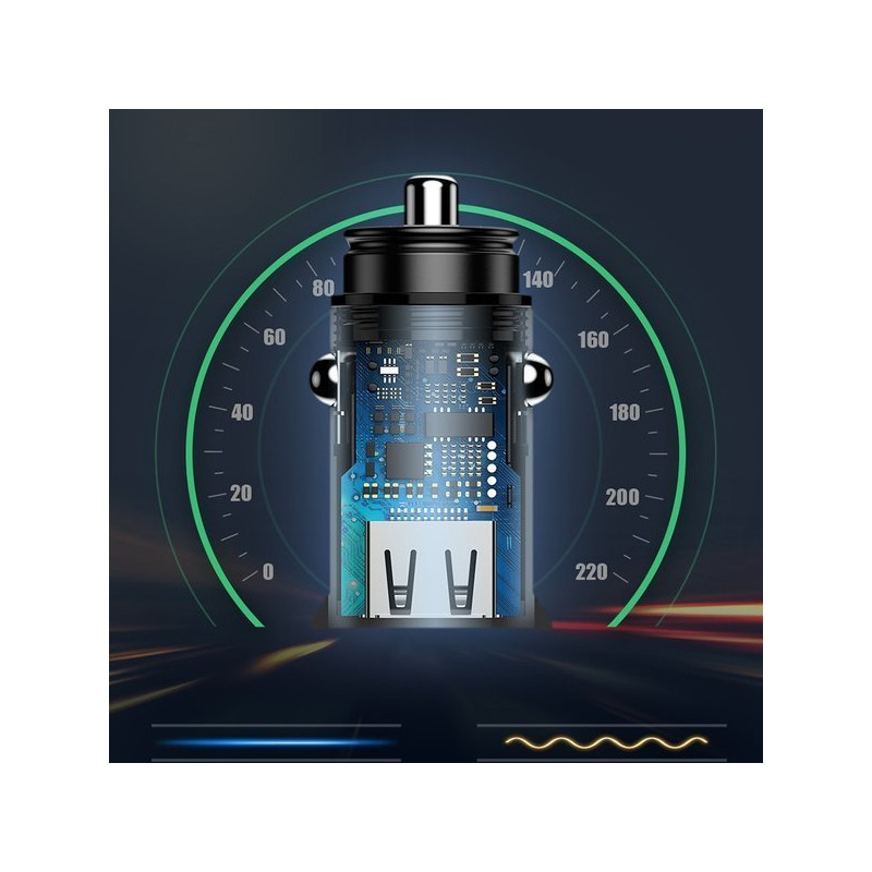 Kompaktowa konstrukcja sprawia, że urządzenie doskonale wpasowuje się w gniazdo zapalniczki, a delikatne podświetlenie LED ułatwia lokalizację ładowarki po zmroku. Całość została zaprojektowana z dbałością o detale i niezawodność w każdych warunkach.