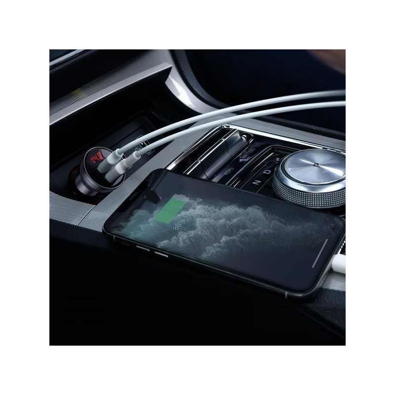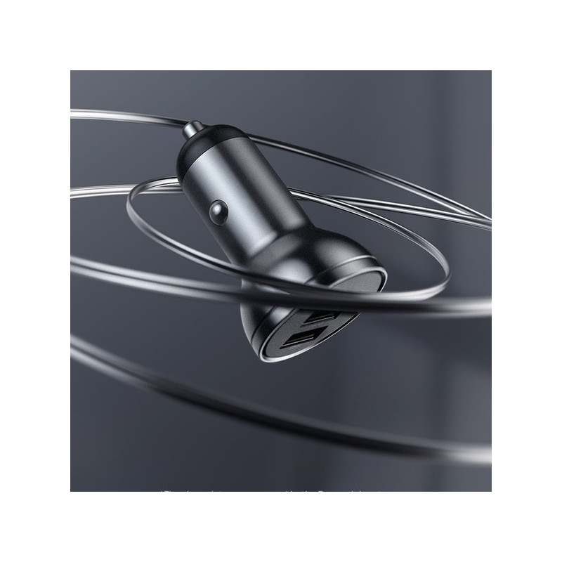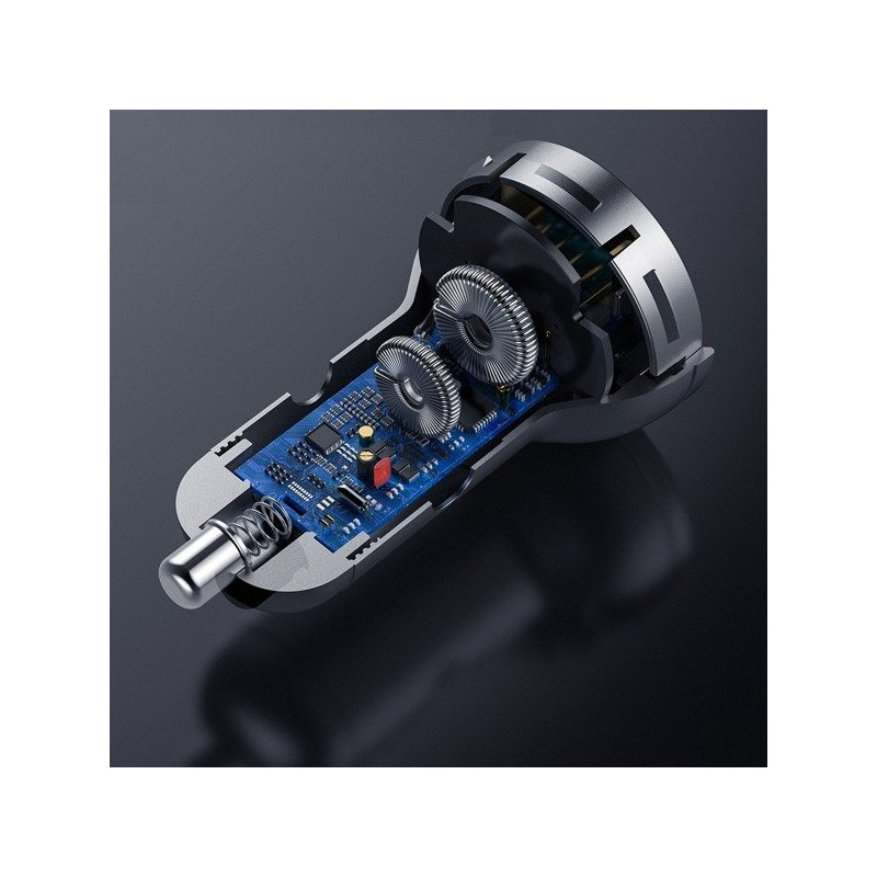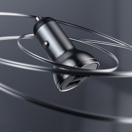 Obudowa wykonana z ognioodpornego tworzywa ABS oraz stopu aluminium zapewnia odporność na uszkodzenia i przegrzewanie. Matowe wykończenie, gładkie linie i kompaktowe wymiary sprawiają, że ładowarka doskonale komponuje się z nowoczesnym wnętrzem samochodu. Jej niewielki rozmiar pozwala na wygodne użytkowanie bez zajmowania miejsca.
