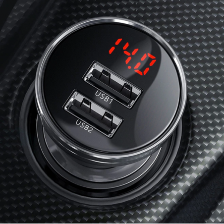 Na froncie ładowarki umieszczono cyfrowy wyświetlacz, który w czasie rzeczywistym pokazuje aktualne napięcie w gnieździe zapalniczki. To nie tylko ciekawy dodatek – to także praktyczne narzędzie do monitorowania stanu akumulatora. Przed uruchomieniem auta napięcie 12.2–12.8V jest prawidłowe, a po odpaleniu – między 13.4 a 14.8V.