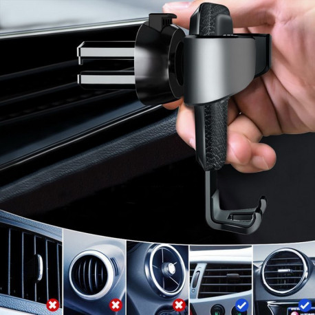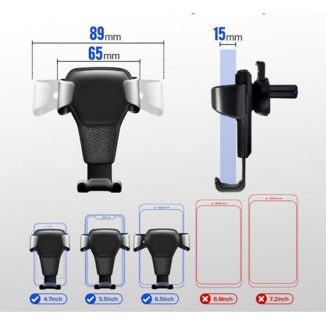 Uchwyt pasuje do większości najnowszych urządzeń dostępnych na rynku. Został wykonany z wysokiej jakości materiałów, co czyni go wyjątkowo trwałym i wytrzymałym. Zmieści telefon o wielkości od 4" aż do 6,5". Montowany do kratki nawiewu.