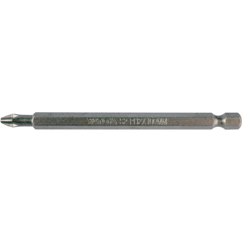 Końcówka bit YATO YT-0485 to precyzyjnie wykonane akcesorium do wkręcania wkrętów z nacięciem Phillips PH2. Dzięki długości 100 mm pozwala na pracę w głębokich gniazdach oraz trudno dostępnych miejscach. Sześciokątny uchwyt 1/4" (6,3 mm) zapewnia kompatybilność z większością uchwytów narzędziowych.