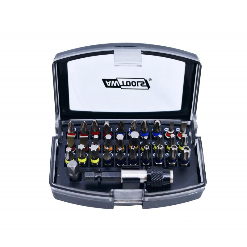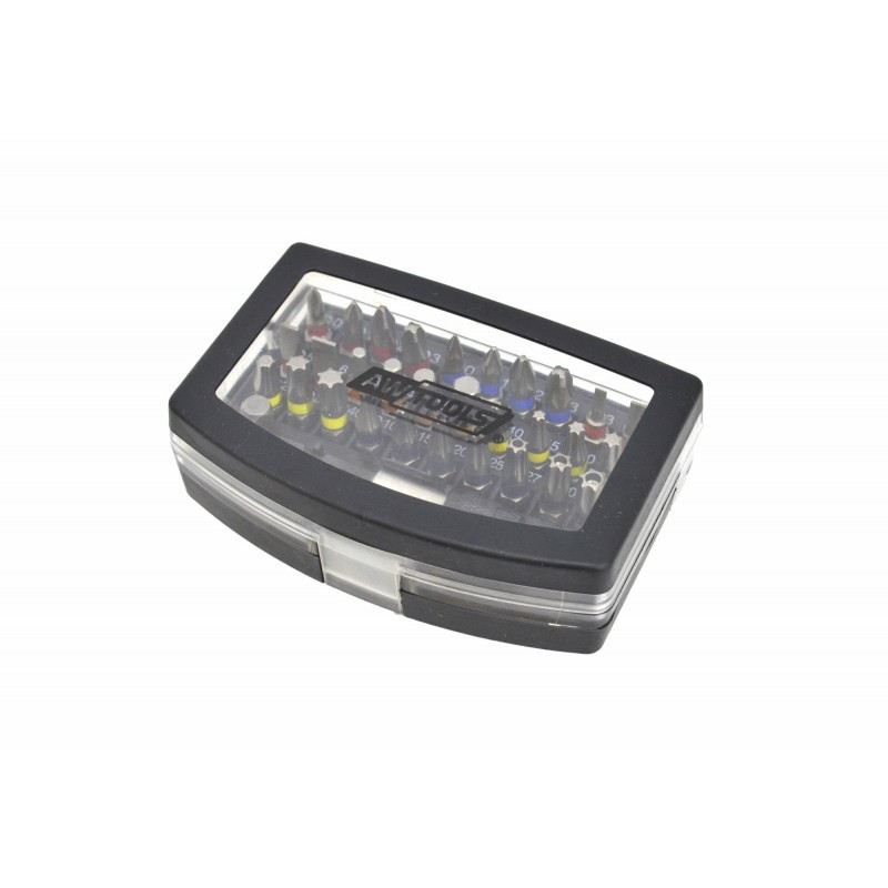 Zestaw końcówek bitów S2 32 części AW37915 marki AWTOOLS to wszechstronny i wytrzymały zestaw narzędzi, który spełni oczekiwania zarówno profesjonalistów, jak i majsterkowiczów. Wykonany z najwyższej jakości stali narzędziowej S2, gwarantuje wyjątkową trwałość i odporność na zużycie, nawet w trudnych warunkach pracy. Stal S2 cechuje się wysoką twardością, co pozwala na długotrwałe użytkowanie bez ryzyka szybkiego zużycia czy uszkodzenia końcówek. Dzięki barwnemu oznaczeniu oraz wygrawerowanym rozmiarom poszczególnych bitów, znalezienie odpowiedniego narzędzia jest szybkie i intuicyjne, co znacznie skraca czas pracy. Zestaw jest kompatybilny z większością dostępnych na rynku elektronarzędzi wiertarskich, co czyni go idealnym do wielu zadań związanych z dokręcaniem i odkręcaniem śrub. Niezależnie od tego, czy pracujesz przy montażu mebli, naprawach mechanicznych, czy też w serwisie, ten zestaw z pewnością spełni Twoje oczekiwania.