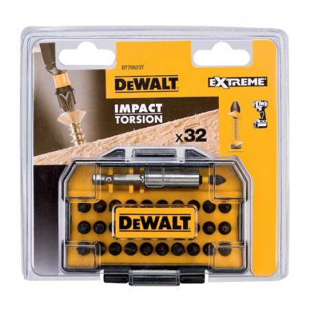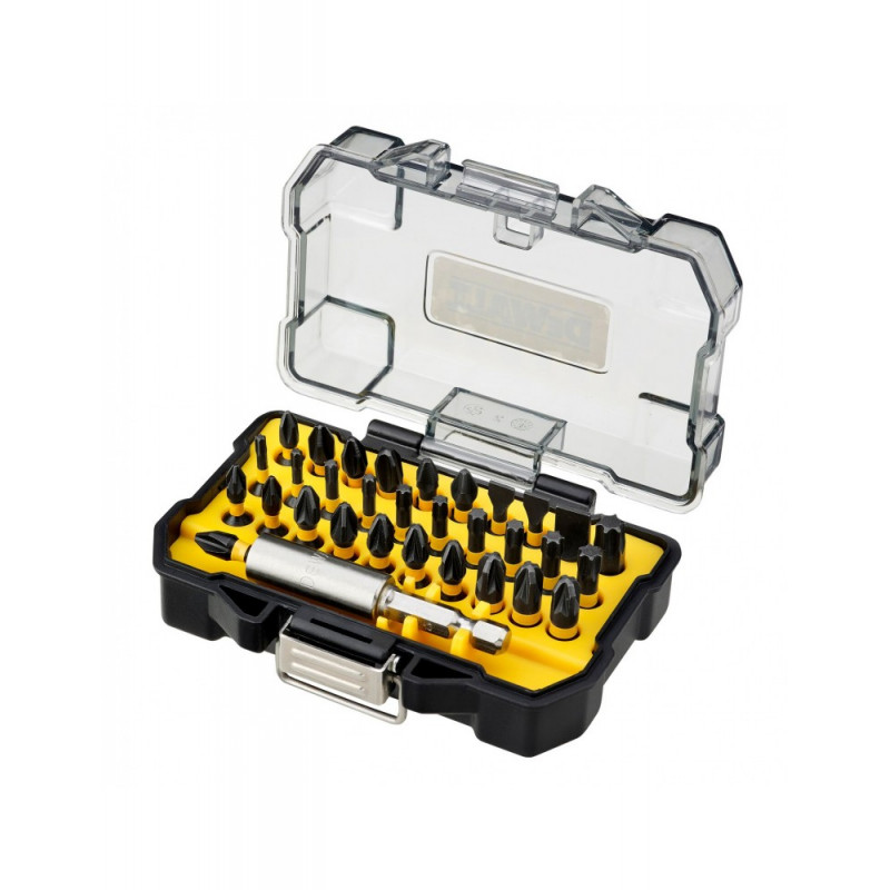 Zestaw końcówek DEWALT DT70523T-QZ FLEXTORQ to profesjonalny komplet bitów przeznaczony do pracy z wkrętarkami udarowymi i klasycznymi. W skład zestawu wchodzi 32 elementy, w tym końcówki typu PH, PZ, Torx, płaskie, a także uchwyt magnetyczny. Całość zamknięta jest w wytrzymałej kasecie transportowej z zaczepem na pasek.