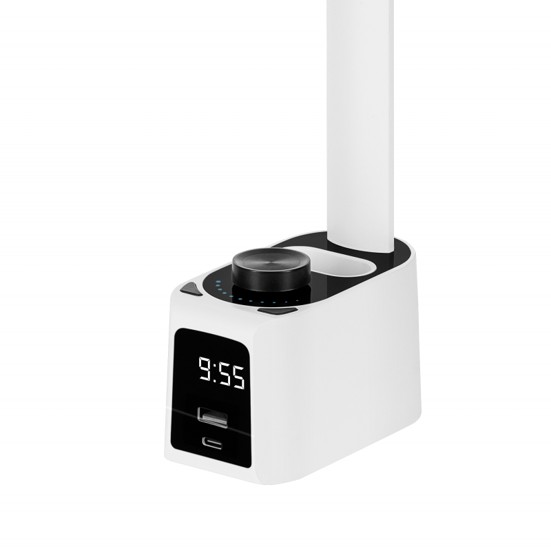 Lampka na biurko z zegarem i ładowarką KOM1019 REBEL to doskonałe połączenie nowoczesnej technologii z funkcjonalnością, które sprawia, że jest to idealne rozwiązanie dla każdego biura czy przestrzeni roboczej. Wyposażona w szereg zaawansowanych funkcji, ta lampka nie tylko oświetli Twoje miejsce pracy, ale także umożliwi ładowanie urządzeń mobilnych, co znacząco zwiększa jej wszechstronność i wygodę użytkowania.