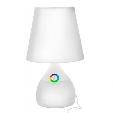Dotykowy włącznik, podstawa lampy może świecić się na dowolny kolor RGB, nawet gdy sama lampa jest wyłączona, światło przechodzące płynnie od 5 do 300lm, 3000K