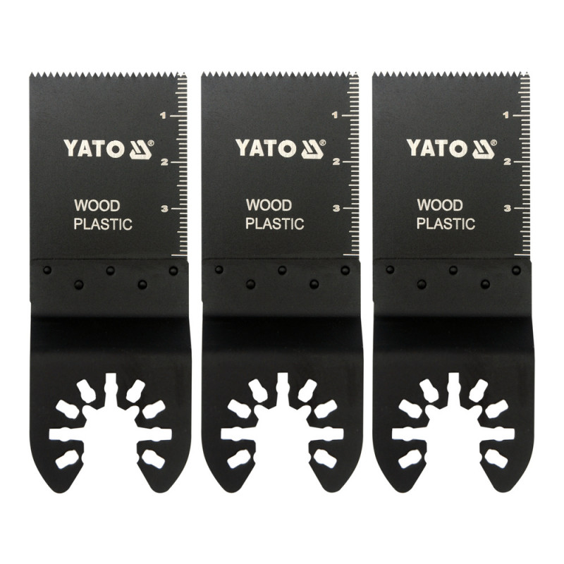 Brzeszczot YT-34685 ma szerokość 34 mm i długość 40 mm, co czyni go optymalnym narzędziem do precyzyjnego cięcia w różnych materiałach. Jego konstrukcja umożliwia wygodne i kontrolowane cięcie, co jest szczególnie przydatne podczas pracy w trudno dostępnych miejscach. Materiał wykonania brzeszczotu to HCS (stal węglowa), który zapewnia dobrą odporność na zużycie i długą żywotność narzędzia. Stal węglowa jest idealna do obróbki miękkich materiałów, takich jak drewno czy plastik, ponieważ jest wystarczająco twarda, aby utrzymać ostrość zębów podczas intensywnego cięcia. W zestawie znajdują się trzy brzeszczoty, co zapewnia wygodę i gotowość do pracy w różnych zadaniach bez potrzeby ciągłego zakupu nowych akcesoriów. Akcesoria z serii Yato Quick Release System pozwalają na szybką, beznarzędziową wymianę brzeszczotów, co znacząco przyspiesza pracę i zwiększa jej efektywność. System ten jest kompatybilny z narzędziami wielofunkcyjnymi Yato, takimi jak YT-82220, YT-82223, YT-82818, oraz YT-82900.