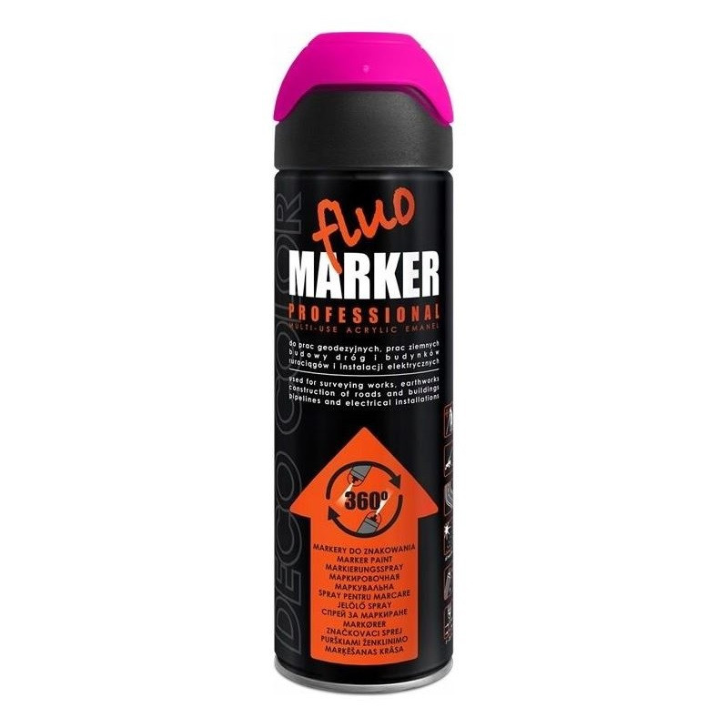 Marker Spray fluo różowy 500ml 104003 DECO COLOR to profesjonalne narzędzie stworzone z myślą o zastosowaniach w geodezji, budownictwie oraz leśnictwie. Ten wszechstronny marker jest idealnym rozwiązaniem dla osób potrzebujących wysokiej jakości, wyraźnych i trwałych oznaczeń na różnorodnych powierzchniach, takich jak asfalt, drewno, metal, beton, szkło czy kamień. Jego specjalistyczna formuła została zaprojektowana tak, aby zapewniać doskonałe rezultaty nawet w trudnych warunkach atmosferycznych.