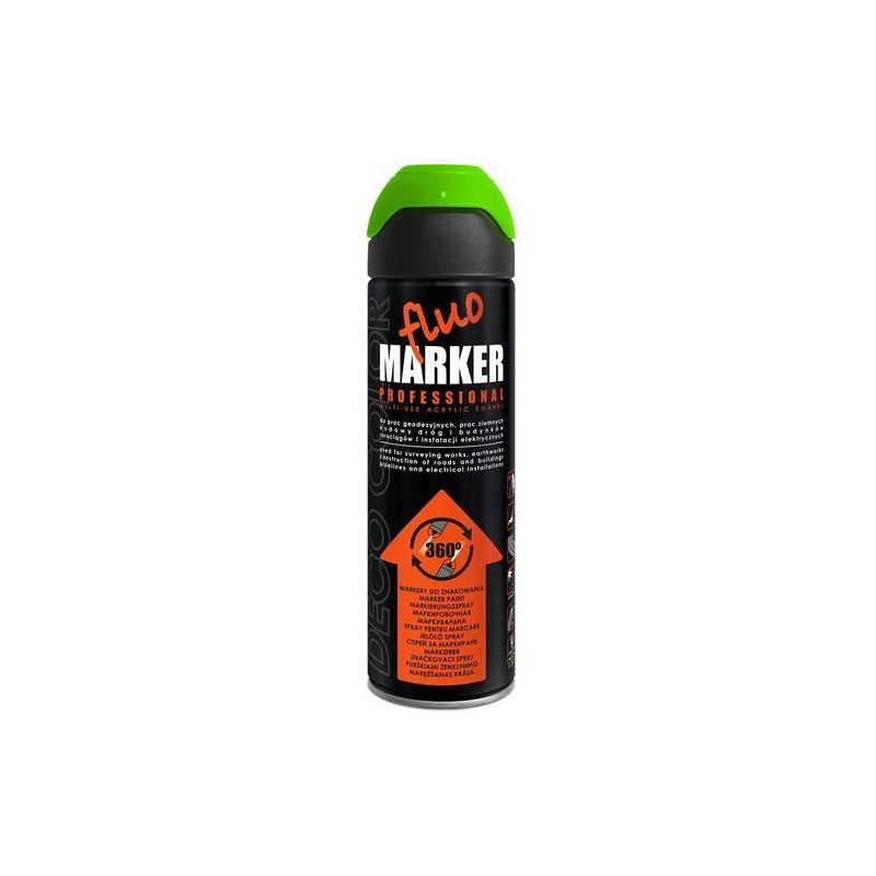 Marker Spray fluo zielony 500ml 006889 DECO COLOR to profesjonalne narzędzie stworzone z myślą o zastosowaniach w geodezji, budownictwie oraz leśnictwie. Ten wszechstronny marker jest idealnym rozwiązaniem dla osób potrzebujących wysokiej jakości, wyraźnych i trwałych oznaczeń na różnorodnych powierzchniach, takich jak asfalt, drewno, metal, beton, szkło czy kamień. Jego specjalistyczna formuła została zaprojektowana tak, aby zapewniać doskonałe rezultaty nawet w trudnych warunkach atmosferycznych.