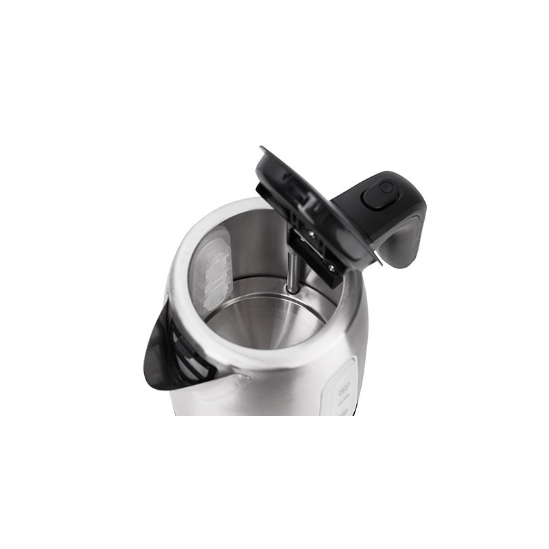 Funkcjonalność czajnika zwiększa dwustronny wskaźnik poziomu wody, który jest wygodny zarówno dla prawo-, jak i leworęcznych użytkowników. Dzięki obrotowej podstawie 360°, czajnik można ustawić pod dowolnym kątem, co ułatwia jego użytkowanie, a przycisk otwierający pokrywkę umożliwia szybkie napełnianie wodą. Schowek na przewód zasilający pomaga utrzymać porządek w kuchni i zapobiega plątaniu się kabli. Czajnik jest zasilany 220-240V ~50/60Hz, co zapewnia jego wszechstronność i kompatybilność z większością gniazdek elektrycznych w Polsce i Europie. Długość przewodu zasilającego wynosząca 69 cm oferuje odpowiednią elastyczność w jego ustawieniu. Jego wymiary 20,0 x 20,0 x 13,0 cm sprawiają, że czajnik jest kompaktowy, ale jednocześnie funkcjonalny, a kolor inox dodaje mu elegancji i nowoczesności. Typ wtyczki E/F zapewnia kompatybilność z większością standardowych gniazdek.