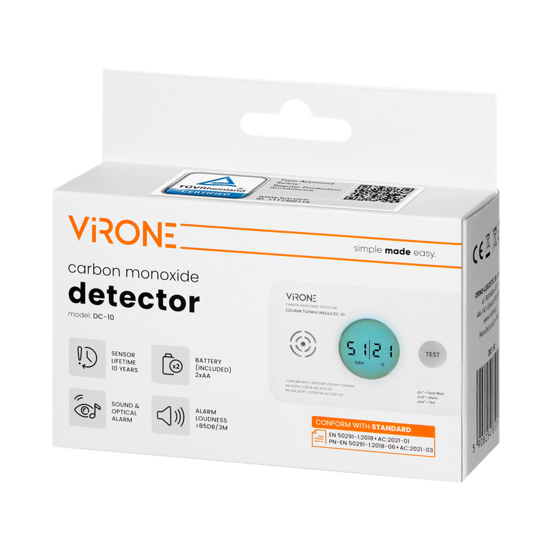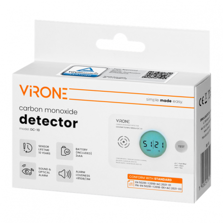 Bateryjny czujnik tlenku węgla VIRONE to nowoczesne urządzenie przeznaczone do stałego monitorowania stężenia CO w pomieszczeniach mieszkalnych. Sprawdzi się w miejscach szczególnie narażonych na powstawanie czadu – w pobliżu kotłów, kominków czy piecyków gazowych. To niezależne, autonomiczne rozwiązanie zwiększające bezpieczeństwo domowników.