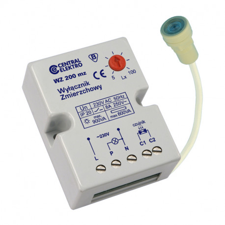 Automat zmierzchowy służy do automatycznego załączania oświetlenia ulic, placów, wystaw, reklam, itp. o zmierzchu i wyłączania tegoż oświetlenia o świcie. Sondę zewnętrzną automatu umieścić w miejscu o stałym dostępie naturalnego światła dziennego, które zmianami swej intensywności będzie powodować załączanie i wyłączanie oświetlenia. Pora załączenia oświetlenia może być ustawiona przez użytkownika potencjometrem. Obrót w stronę “księżyca“ - załączy później, obrót w stronę “słoneczka“ - załączy wcześniej. Automat posiada układ opóźniający załączenie i wyłączenie oświetlenia, niwelując w ten sposób wpływ zakłóceń (np. wyładowań atmosferycznych) na pracę automatu.