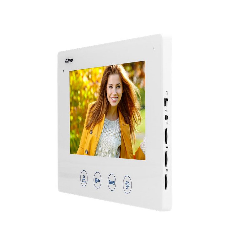 Zestaw wideodomofonowy, kolorowy, ultra płaski monitor bezsłuchawkowy LCD 7", dotykowy panel monitora z podświetlanymi przyciskami, płynna regulacja parametrów monitora (głośności dzwonka i rozmowy oraz jasności i koloru obrazu), 16 dźwięków dzwonka do wyboru, kamera CMOS, montaż natynkowy, daszek ochronny w zestawie, miejsce na nazwisko, oświetlenie podczerwienią umożliwia widzenie w nocy, dodatkowe sterowanie bramą, klawiatura numeryczna umożliwia otwarcie rygla za pomocą kodu, zasilanie prądem stałym z zasilacza do gniazdka 15V DC, elektrozaczep o napięciu stałym i poborze prądu nie większym niż 500mA nie wymaga dodatkowego zasilania.