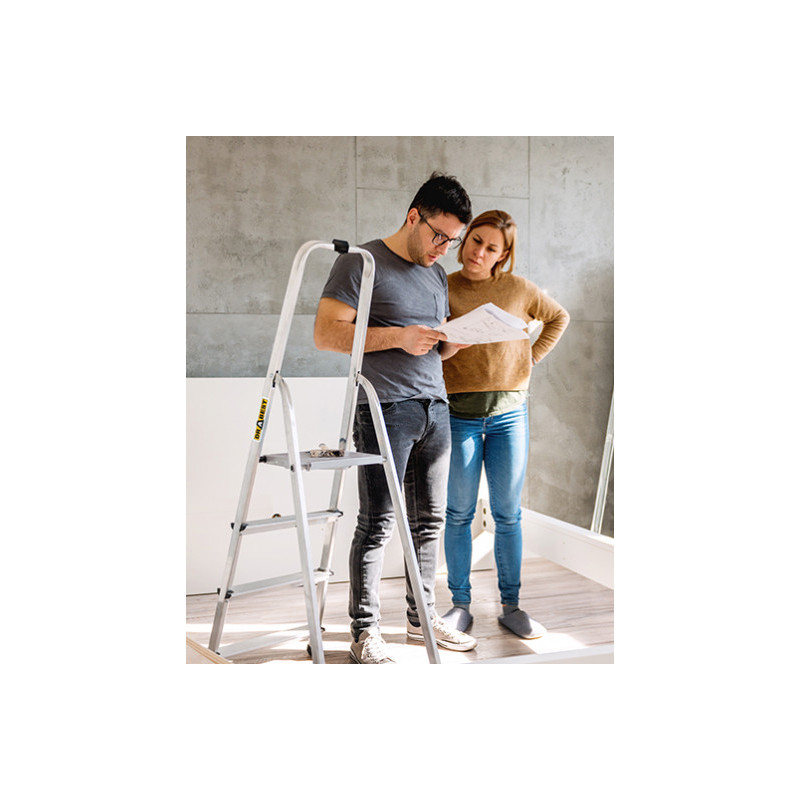 Drabina domowa wykonana z wytrzymałego i lekkiego aluminium jest dedykowana do codziennej pracy w gospodarstwach domowych oraz okazjonalnych remontach.