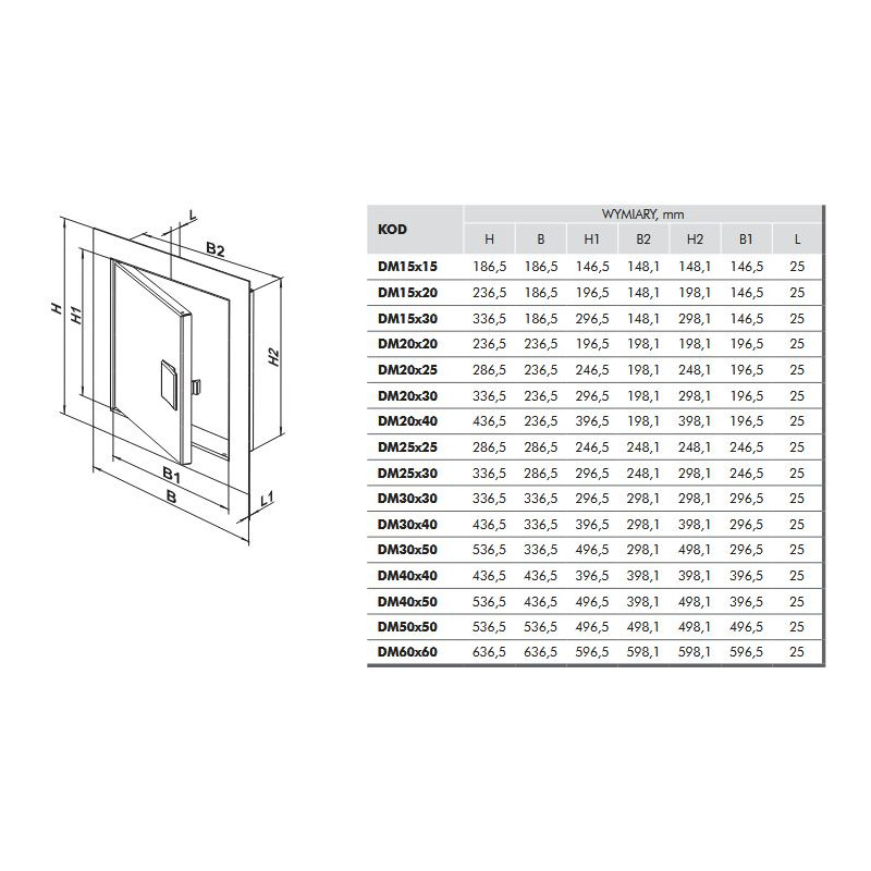Drzwiczki rewizyjne VENTIKA DM30X30 300×300 to praktyczne rozwiązanie umożliwiające łatwy dostęp serwisowy do urządzeń i instalacji. Wykonane ze stali malowanej proszkowo, zapewniają trwałość i estetyczny wygląd przez długi czas. Wyposażone są w plastikowy uchwyt, który ułatwia otwieranie i zapewnia komfort użytkowania. Drzwiczki są estetyczne i higieniczne, idealne do pomieszczeń mieszkalnych, biurowych i technicznych.