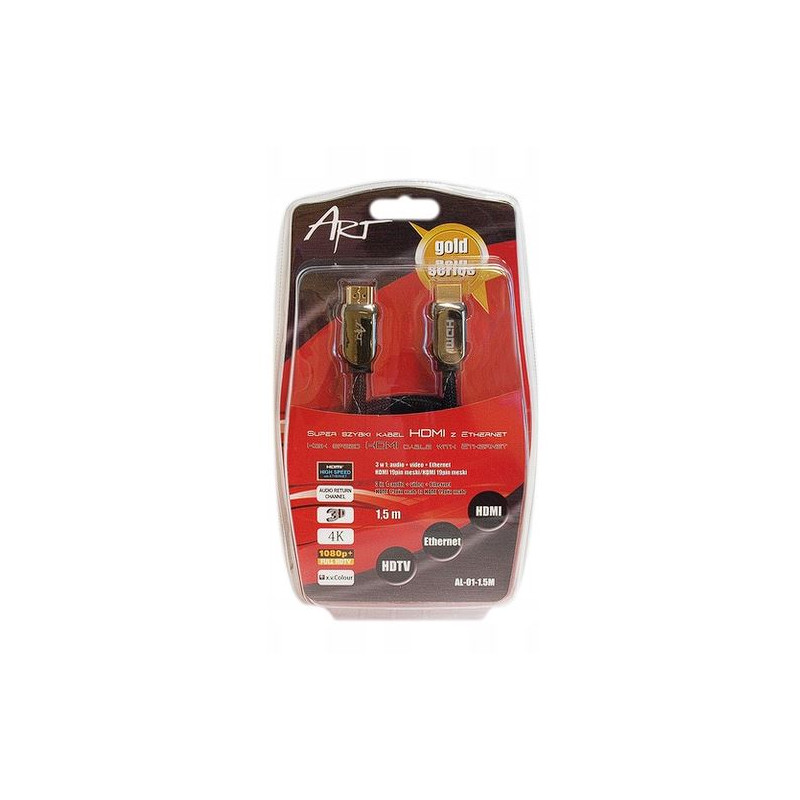 Kabel HDMI / HDMI HQ pozłacany 3D AL-01-1.5M ART to produkt, który łączy w sobie nowoczesne technologie oraz wysoką jakość wykonania, co czyni go idealnym rozwiązaniem dla osób poszukujących niezawodnego połączenia do przesyłania sygnału audio i wideo w najwyższej jakości. Przewód ten jest zgodny ze standardem HDMI 1.4, co zapewnia znakomitą prędkość transmisji danych na poziomie do 10 GB/s, co jest kluczowe w przypadku przesyłania treści multimedialnych o wysokiej rozdzielczości. Kabel obsługuje różne rozdzielczości, w tym standardowe 720p, 1080p. Dzięki temu użytkownicy mogą cieszyć się doskonałą jakością obrazu, co jest szczególnie istotne podczas oglądania filmów w wysokiej rozdzielczości lub grania w nowoczesne gry komputerowe. Obsługuje również obraz 3D w rozdzielczości 1440p i 4K.