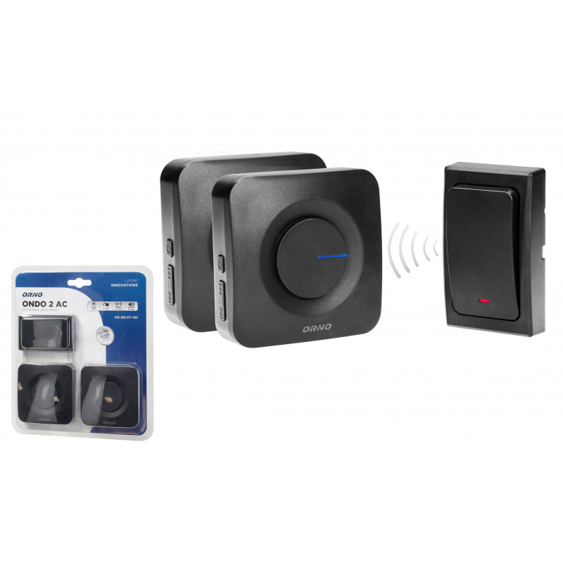 Bezprzewodowe z przyciskiem bezbateryjnym, dzwonek przeznaczony jest do stosowania w domach, mieszkaniach, biurach, szpitalach, sklepach itp. Nie wymaga instalacji dzwonkowej. Dzwonek (odbiornik) włączany jest bezpośrednio do gniazdka sieci ~230V, a nadajnik zasilany jest z przetwornika elektromechanicznego i nie wymaga stosowania baterii. Funkcja learning system umożliwia logowanie dodatkowych przycisków. Zasięg dzwonka w terenie otwartym wynosi około 200m. Odbiorniki posiadają 4-stopniową regulację głośności oraz 36 polifonicznych dźwięków dzwonka do wyboru.