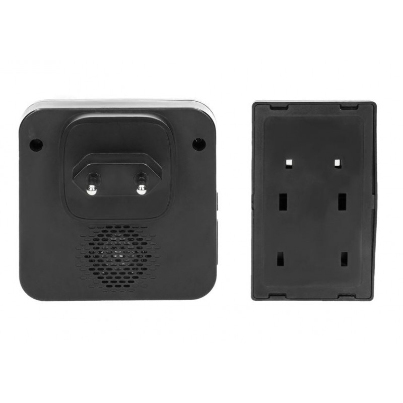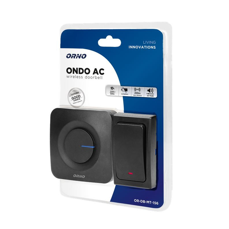 Dzwonek bezprzewodowy z przyciskiem bezbateryjnym przeznaczony jest do stosowania w domach, mieszkaniach, biurach, szpitalach, sklepach itp. Nie wymaga instalacji dzwonkowej. Służy do sygnalizacji dźwiękowej i świetlnej. Dzwonek (odbiornik) włączany jest bezpośrednio do gniazdka sieci ~230V, a nadajnik zasilany jest z przetwornika elektromechanicznego i nie wymaga stosowania baterii. Funkcja learning system umożliwia logowanie dodatkowych przycisków. Zasięg dzwonka w terenie otwartym wynosi 200m. Odbiornik posiada 4-stopniową regulację głośności oraz 36 polifoniczne dźwięki dzwonka do wyboru.