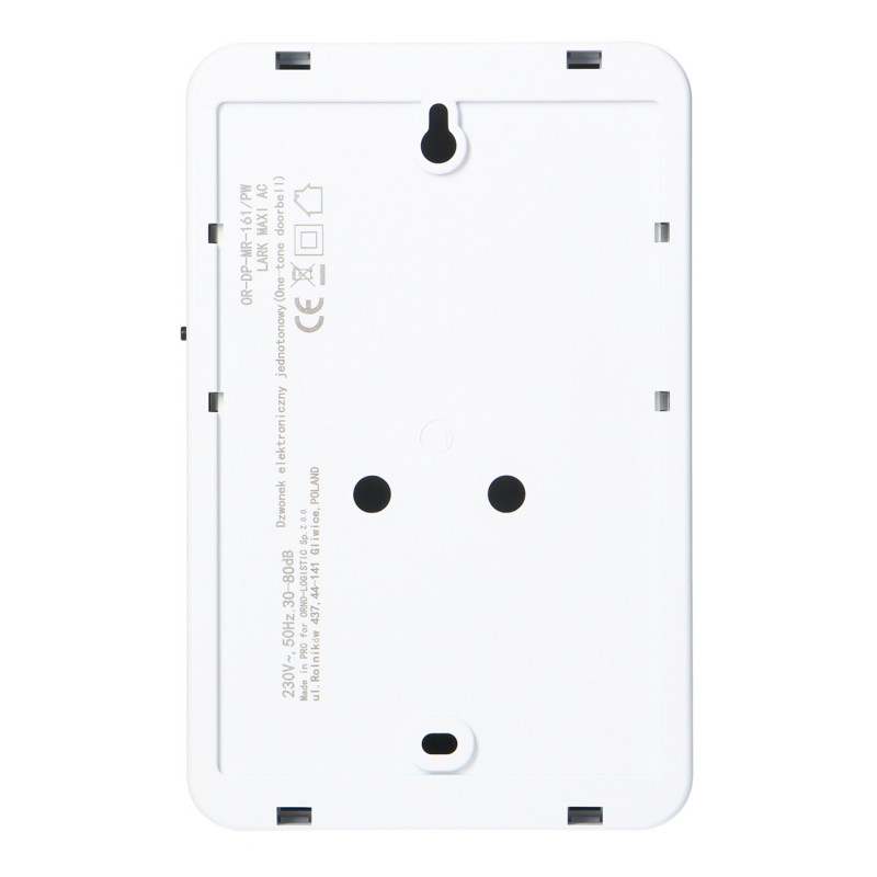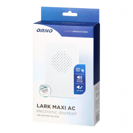 Dzwonek elektroniczny LARK MAXI to praktyczne i proste w obsłudze rozwiązanie do domów, mieszkań czy biur. Dzięki zasilaniu 230V AC sprawdzi się w klasycznych instalacjach dzwonkowych, a jego natynkowy montaż ułatwia szybkie i wygodne zamocowanie. Śnieżnobiała obudowa sprawia, że urządzenie dobrze komponuje się z nowoczesnymi wnętrzami.