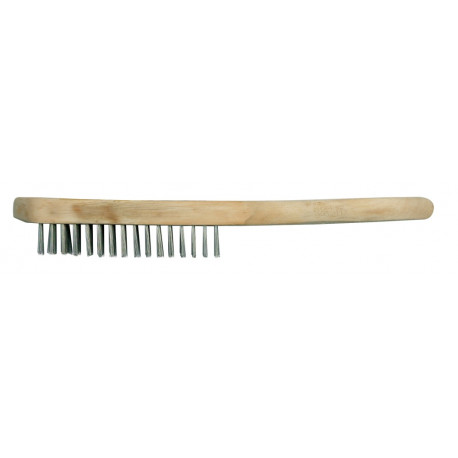 The abrasive brush made of steel and wood is primarily used to clean the work material from excessive pollen generated during work or by axing. The product is designed to solidly and thoroughly clean the work material for further work. Metal artificial bristles formed in a specialized way from stainless steel excellently clean the coarsening on metal parts. Especially often the brush is used on the corners and edges of the costruction. In this way you can prepare the product for filling, soldering or painting.g