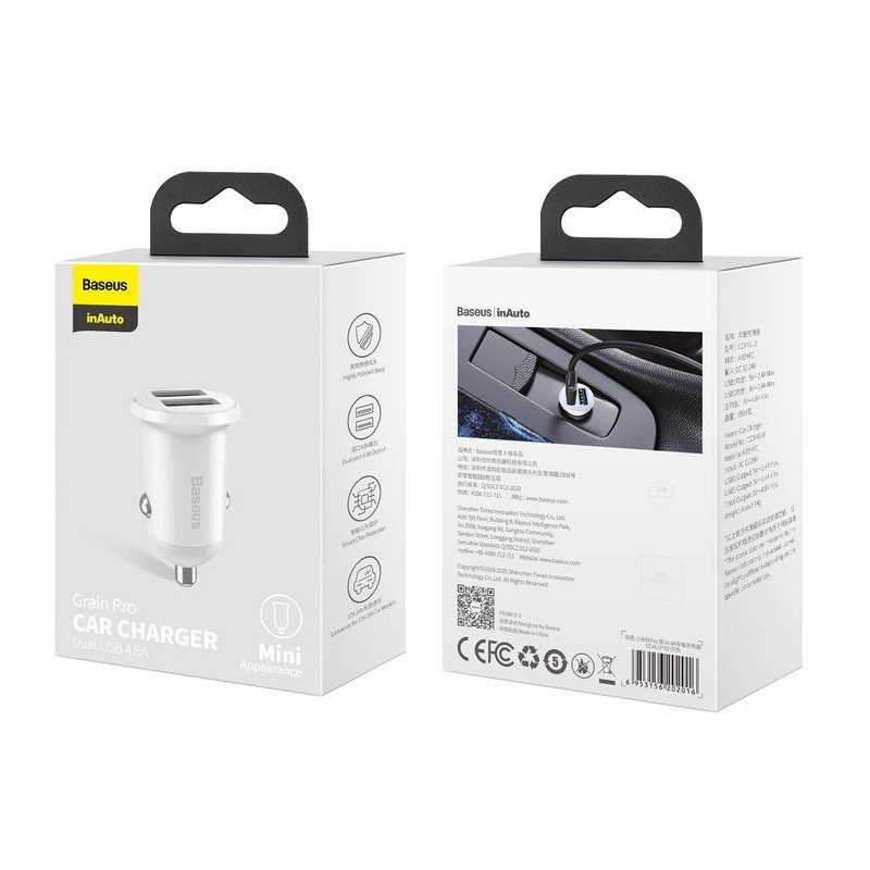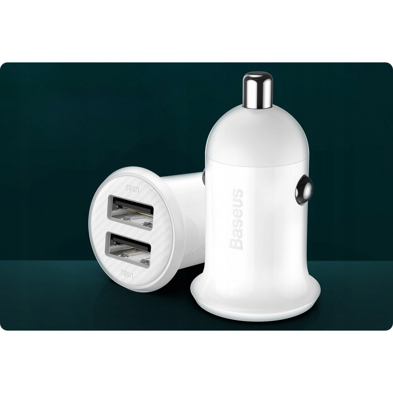 Ładowowarka samochodowa do gniazda zapalniczki 2x USB 4.8A 24W biała CCALLP-02 BASEUS