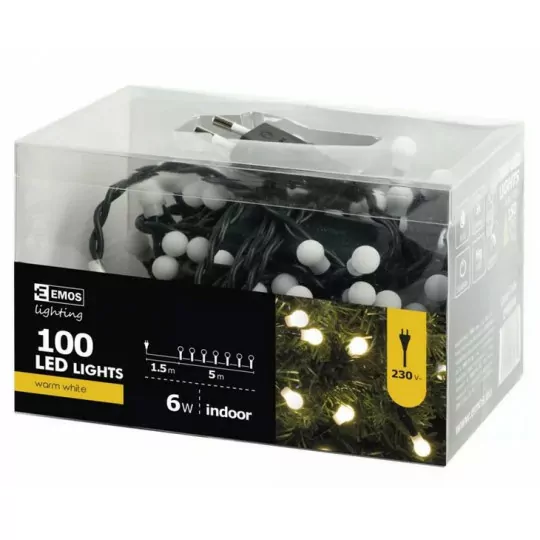 100 LEDs in the shape of balls for holiday lighting and making impressive Christmas decorations. The light points are spaced evenly every 5cm, on a green wire, so the lights fit perfectly in the branches of a traditional Christmas tree. The whole creates 5m of decoration, which, combined with the 1.5m power cord, gives a universal, impressive and durable LED chain. In this auction you are buying the lights in the COLD color. You will find other colors and types on our other auctions.