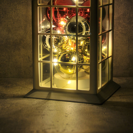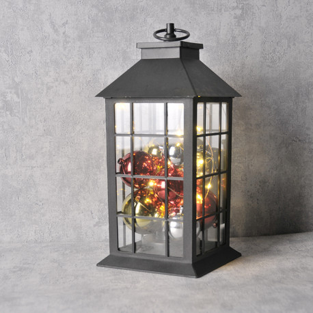 Decorative lantern in a traditional simple shape in black with bubbles, powered by 3 AAA batteries. Elegant decoration that fits into any interior, and the light from the lamps inside makes any room warmer and cozier. The lantern has tiny LED lights inside, which create a unique effect. By not having to use a traditional candle, the product is safe, flameless, smokeless and long-lasting, safe for children, pets. Thoughtful hanging ring, convenient to hang anywhere and easy to remove, without tools.