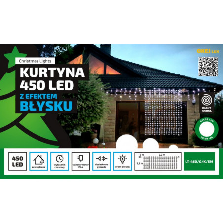 Kurtyna świetlna LED LT-450/G/K/5M barwa ciepła + flash zewnętrzna 2,2x2,5m OKEJ LUX