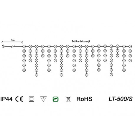 Kurtyna Sople LED z wyłącznikiem czasowym efektownie ozdobią Twój dom na święta Bożego Narodzenia. 500 zwisających diod LED w wiązkach o różnej długości tworzy charakterystyczne sopelki świetlne. Świetnie prezentują się jako świąteczna dekoracja werandy, tarasu czy balkonu. Światełka choinkowe z transformatorem z wyłącznikiem czasowym - tzw. timerem. Po jego uruchomieniu komplet świeci przez 8h, po czym wyłącza się na 16h i automatycznie włącza kolejnego dnia o tej samej porze. 14,5m dekoracji na czarnym przewodzie w 5 wariantach kolorystycznych.