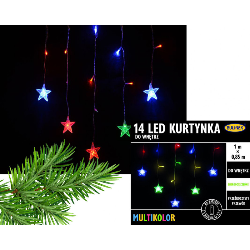Lampki KURTYNKA 14LED na baterie 3xAA multikolor 1 metr wewnętrzne 10-601 BULINEX