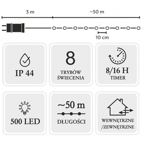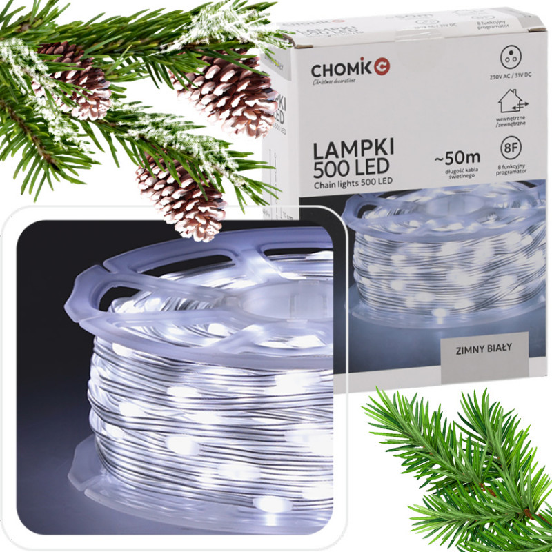 Lampki świąteczne choinkowe LED MICRO na szpuli 500LED zimna barwa CW 50m IP44 LED0122 CHOMIK