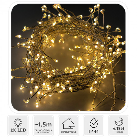 LAMPKI świąteczne choinkowe MICRO DIODY CLUSTER 150 LED ciepła barwa WW na druciku 1,5m na baterie 3xAA LED1803 CHOMIK