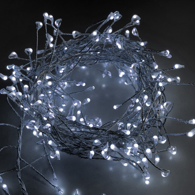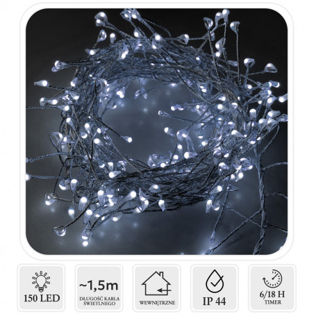 LAMPKI świąteczne choinkowe MICRO DIODY CLUSTER 150 LED na druciku zimna barwa CW na baterie 3xAA 1,5m LED1810 CHOMIK