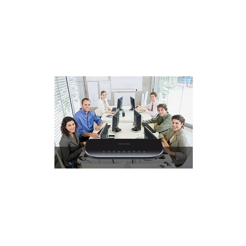 Equipped with 8 10/100/1000Mbps ports, the TL-SG1008D switch boosts network bandwidth for instant transfer of large files. Users in homes, offices, workgroups or production environments can now transfer larger files that require high transmission bandwidth. This allows the network to exchange graphics, CGI, CAD or multimedia files instantly.