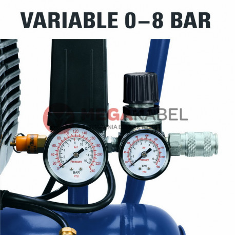 - Pressure gauge and quick-connect coupling for adjusting operating pressure