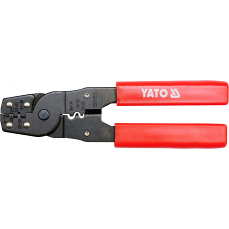 YT-2256 pliers for crimping three types of connectors, with a blackened surface to protect against corrosion and plastic handle caps.