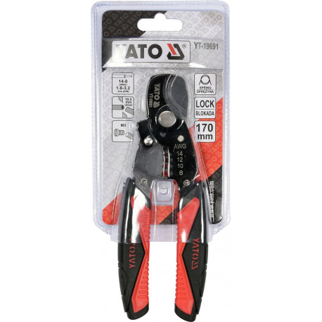 YATO wire cutting pliers. This product is made of stainless steel while its handle is made of plastic in red with black elements. The manufacturer is the YATO brand.