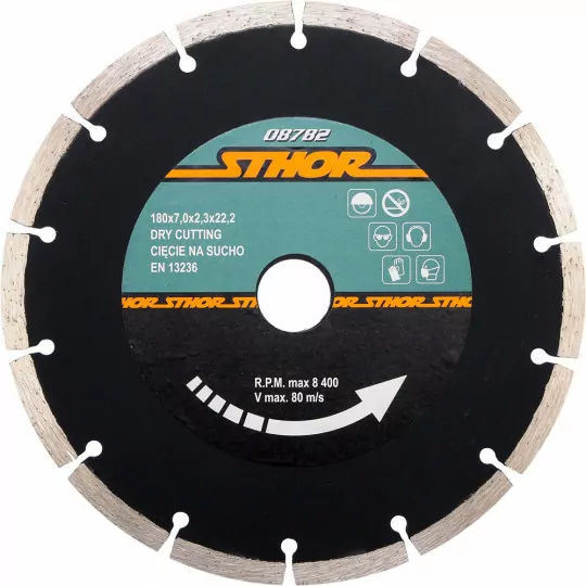 The blade is designed for cutting plaster made of various types of hollow blocks. It can also be easily used to cut curbs, clinkers or secular holes. When selecting a disc, we should first pay attention to the size of the diameter of the grinder. Also we should check the maximum speed of the grinder and compare it with the maximum rpm of the disc. Incorrect selection of the disc can cause damage to the workpiece.