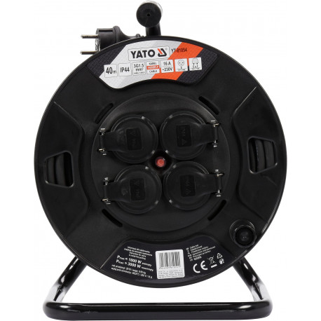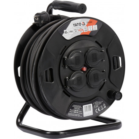 High-quality 40m reel extension cord with 4 sockets. The cable is made of 3 copper wires of 1.5mm² each. Such a cable cross-section makes it possible to connect 4 devices to these extension cords at the same time, which is especially useful at construction sites, workshops or factories. The wires are covered with insulation made of natural rubber H05RR-F, which is characterized by high resistance to mechanical damage, atmospheric factors, chemical substances (cooling and lubricating oils, gasoline, or ethyl and methyl alcohols).