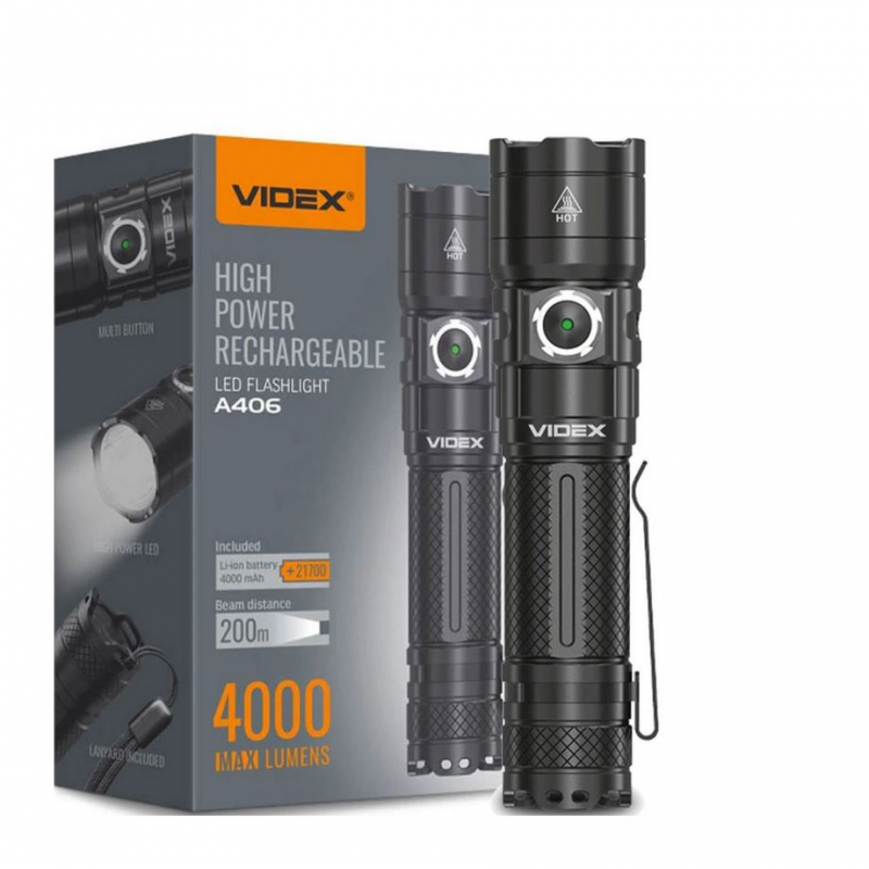 Latarka Taktyczna LED Akumulatorowa Wodoszczelna 20W 4000lm 6000K A406 Bardzo Mocna VIDLAT0040 VIDEX