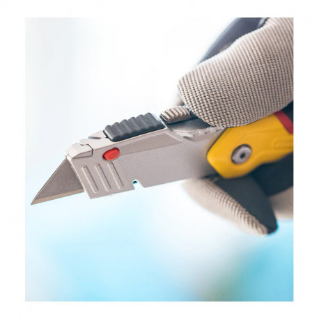 The pocket knife is made of excellent quality stainless steel which has been additionally protected with a protective black lacquer. The knife also has aluminum elements that affect the light and easy use of the product. In addition, the handle is designed so that it does not slip out of your hand while working. The knife is unfolded and folded by means of a lock hidden on the product's handle. This is also a protection of the blade from possible dulling and from getting into the hands of children. The blade is replaceable.