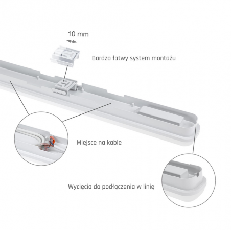 Lampa sufitowa hermetyczna do garażu LIMEA GO 120cm 50W zimna IP65 biała SLI028035CW_PW SPECTRUM LED
