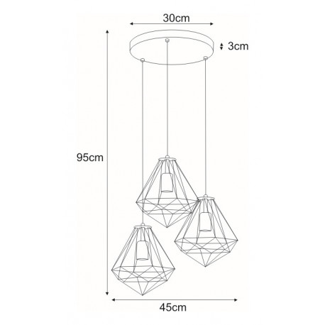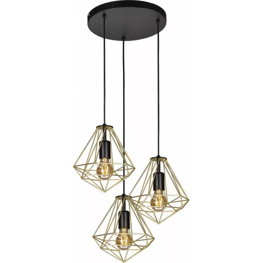 Nowoczesna lampa wisząca do Twojej aranżacji! Ten zwis składa się z trzech źródeł światła, przypominających duże diamenty. Wykonany z metalu, który fantastycznie podkreśla mosiężną barwę oprawy. Taka ilość żarówek w instalacji sprawia, iż światło oddawane przez lampę jest bardzo dobre. Żyrandol perfekcyjnie odnajdzie się w nowoczesnej, loftowej i minimalistycznej przestrzeni. Rekomendujemy!Prezentowana lampa posiada miejsce na trzy źródła światła, a jej wysokość można regulować na przewodzie, dzięki czemu można dopasować ją do różnego typu pomieszczeń.