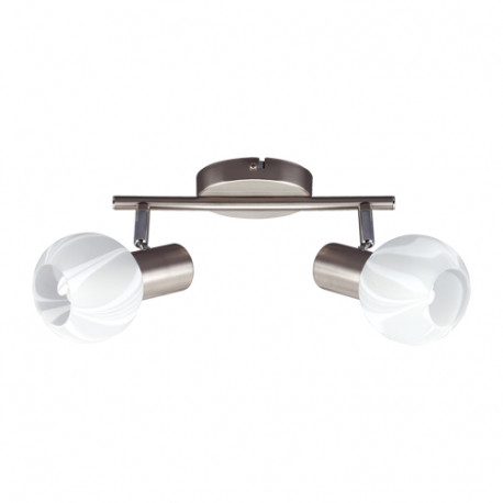 Two light sources along with glass shades have been arranged along one arm. By being able to position the light source in any way, the lamp becomes even more functional, as we can adjust the incidence of light according to our need. The luminaire is characterized by round glass shades, which are decorated with artistic black lines. Only the highest quality materials were used in the production, so it looks great on any ceiling. The lamp is designed to work with bulbs with E14 handle and maximum power of 40W, together with which it will beautifully illuminate the room
