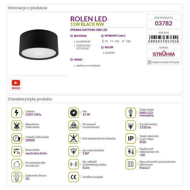 Lampa plafon sufitowy ROLEN LED White 15W NW 03110 Price PLN69.00 Out of stock (0) More Add to cart Bestseller