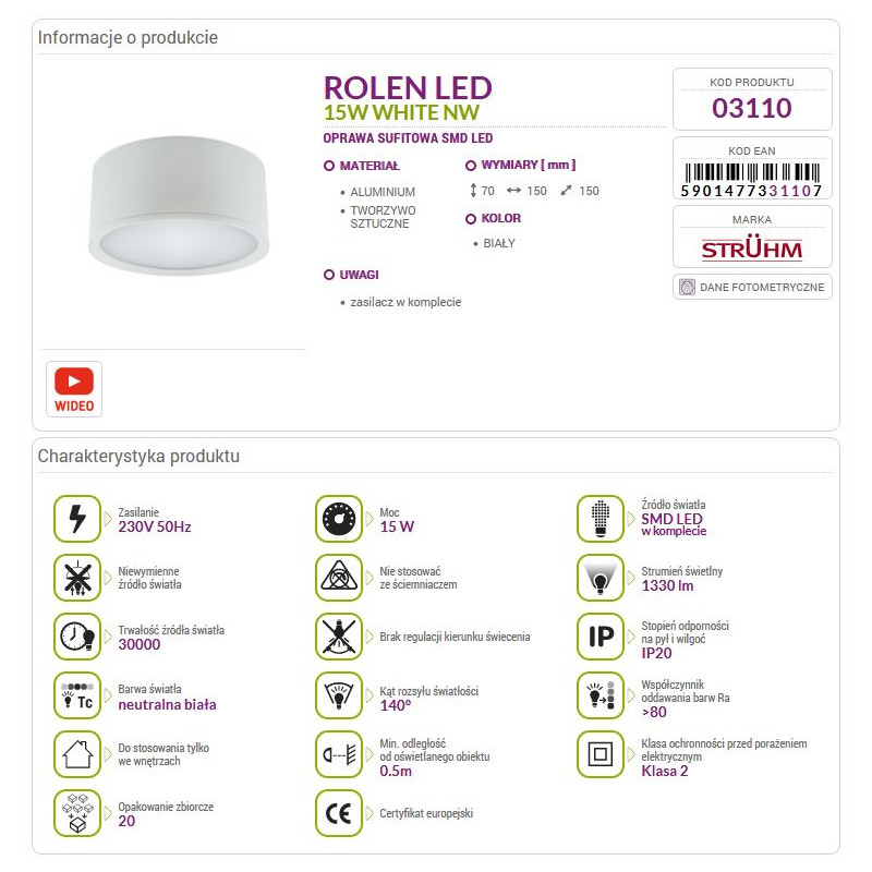 ZORBA DWL white 03954 GU10 STRUHM ceiling plafond lamp Price PLN37.99 Remaining quantity (5) More Add to cart Bestseller