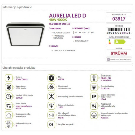 Kolekcja AURELIA to przede wszystkim szereg możliwości aranżacyjnych. Seria wykonana z tworzywa sztucznego, jest odporna na wilgoć w stopniu IP44. Eleganckie i subtelne lampy z kolekcji AURELIA to idealne rozwiązanie dla wszystkich, którzy cenią sobie minimalizm. Swoim kształtem udowadniają bowiem, że najprostsze rozwiązania często stanowią te najlepsze. W lampie zastosowane jest źródło światła LED wraz z ukrytym zasilaczem jest to więc gotowy zestaw! Zastosowanie źródła światła LED pozwoli na zmniejszenie kosztów nawet o 90%. Inne modele dostępne na pozostałych naszych aukcjach.