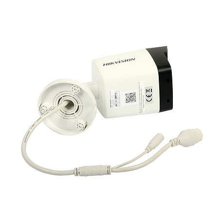 The Hikvision DS-2CD1041-I compact camera is dedicated for use in surveillance systems based on IP DVRs. It is equipped with a 1/2.8" CMOS sensor with a resolution of 4 Mpix and an IR illuminator with a range of up to 30 m, ensuring proper visibility in the absence of light. It has a 2.8mm fixed focal length lens with a 105 . 8° viewing angle. The IP67-rated high-tightness housing ensures protection of the electronics from adverse weather conditions. The camera can be independently powered from any 12V outlet power supply or via POE with a single UTP cable.